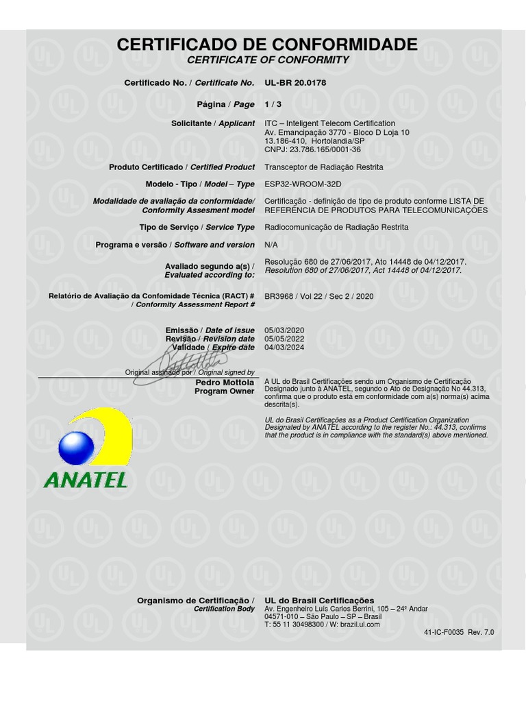 ESP32 WROOM 32D ANATEL Certification 0 PDF Business Engenharia
