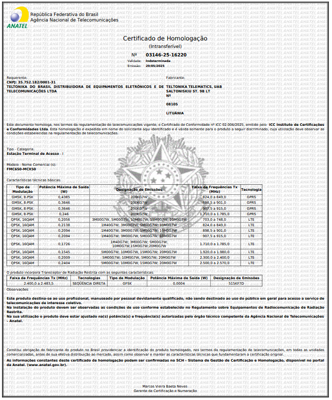 FMM230 Anatel certificate Teltonika Telematics Wiki