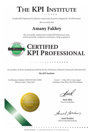 C KPI Certified Amany Fakhry PDF Business and Finance