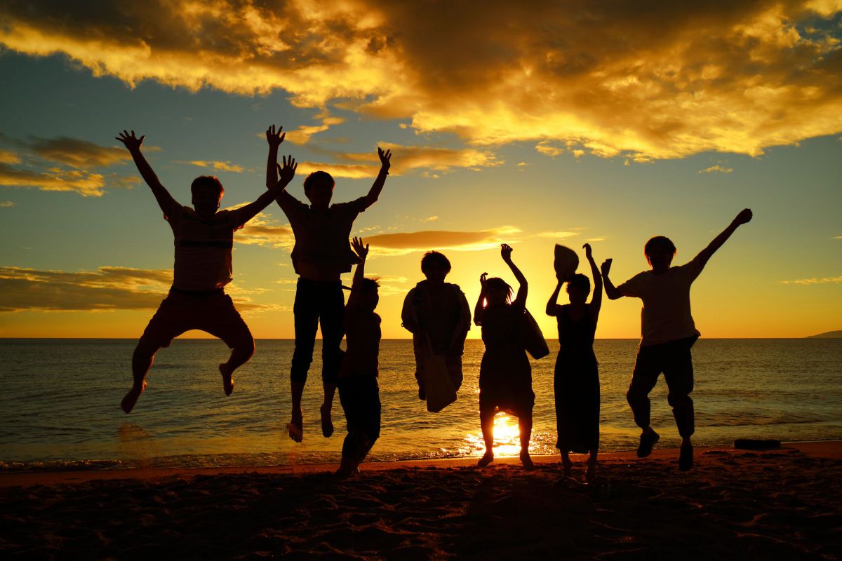 quot Group of Friends Jumping on Beach at Sunset quot by ieatstars Redbubble