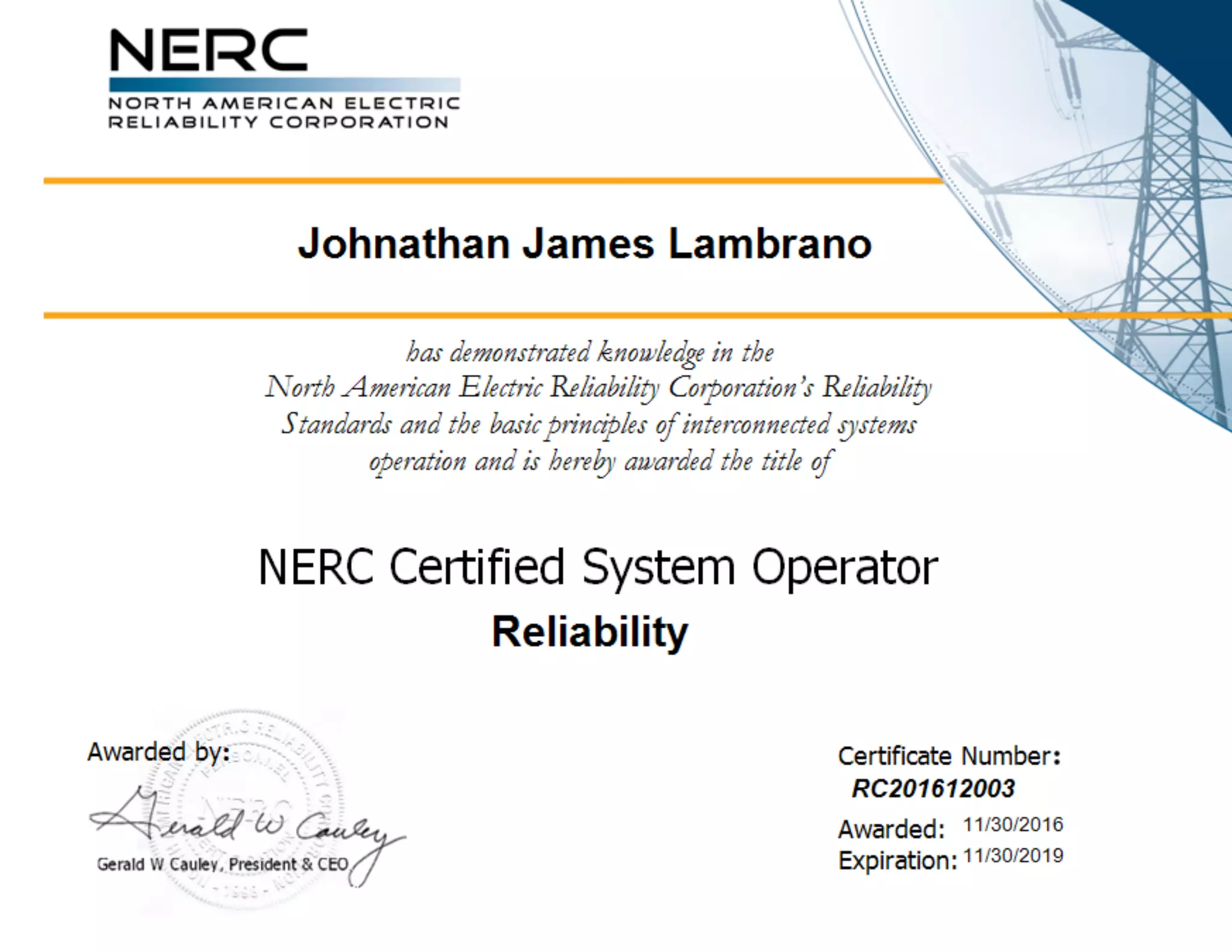 NERC Certification I PJM Certification I ERCOT I Power System Operator