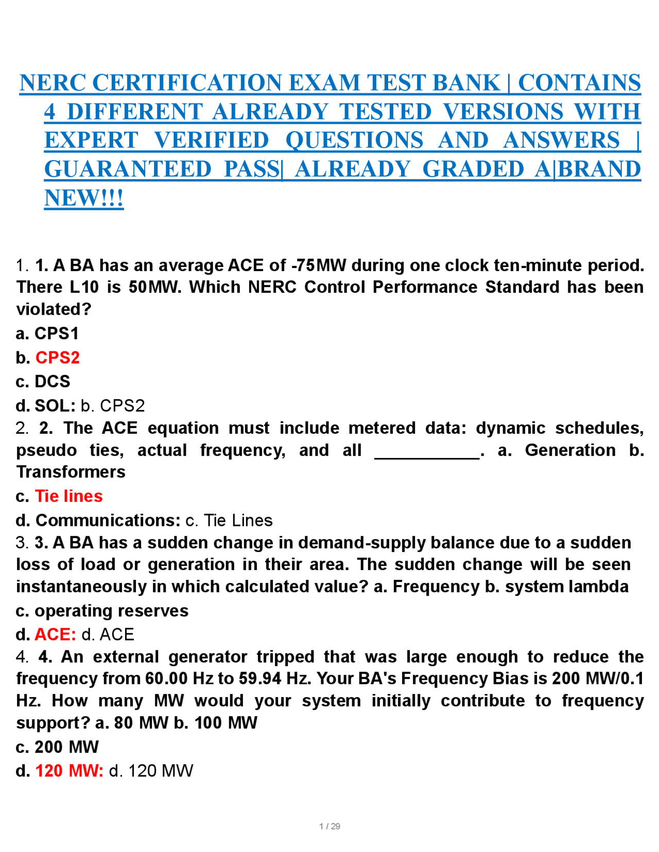 NERC Certification Exam Question And Answers 2023 Exams Nursing Docsity