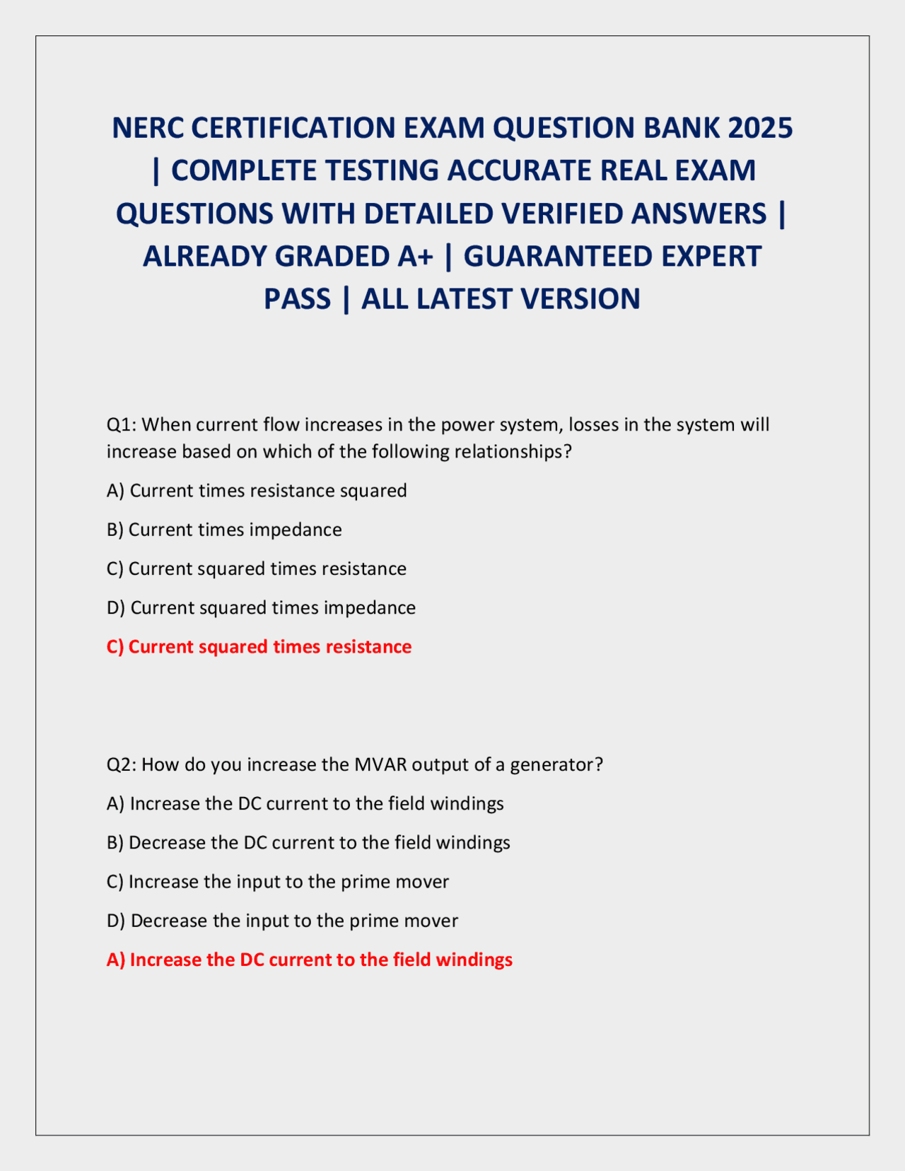 NERC Certification Practice Questions and Answers(RATED A ) NERC