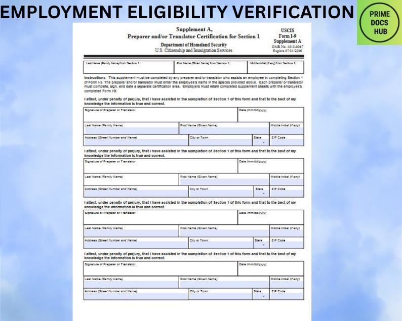 Form I 9 Supplement Section 1 Preparer and/or Translator : Fill out