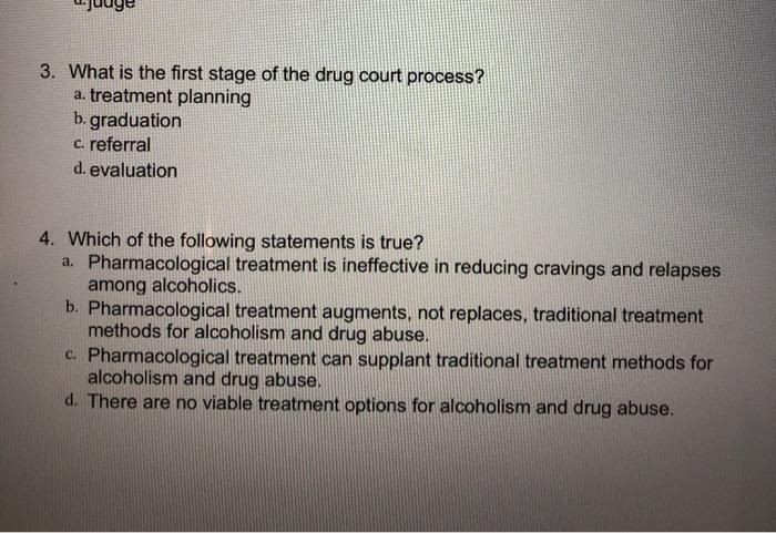 3 What is the first stage of the drug court process? Chegg com