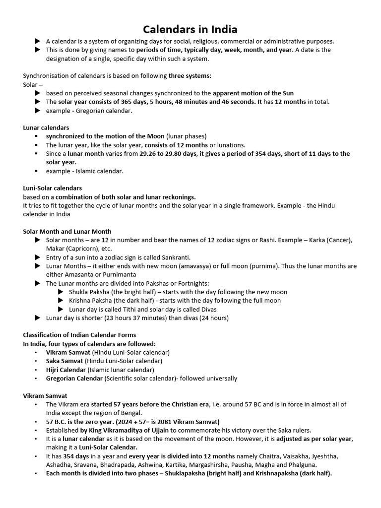 128) (Static GK) Calendars in India PDF Moon Lunisolar Calendars