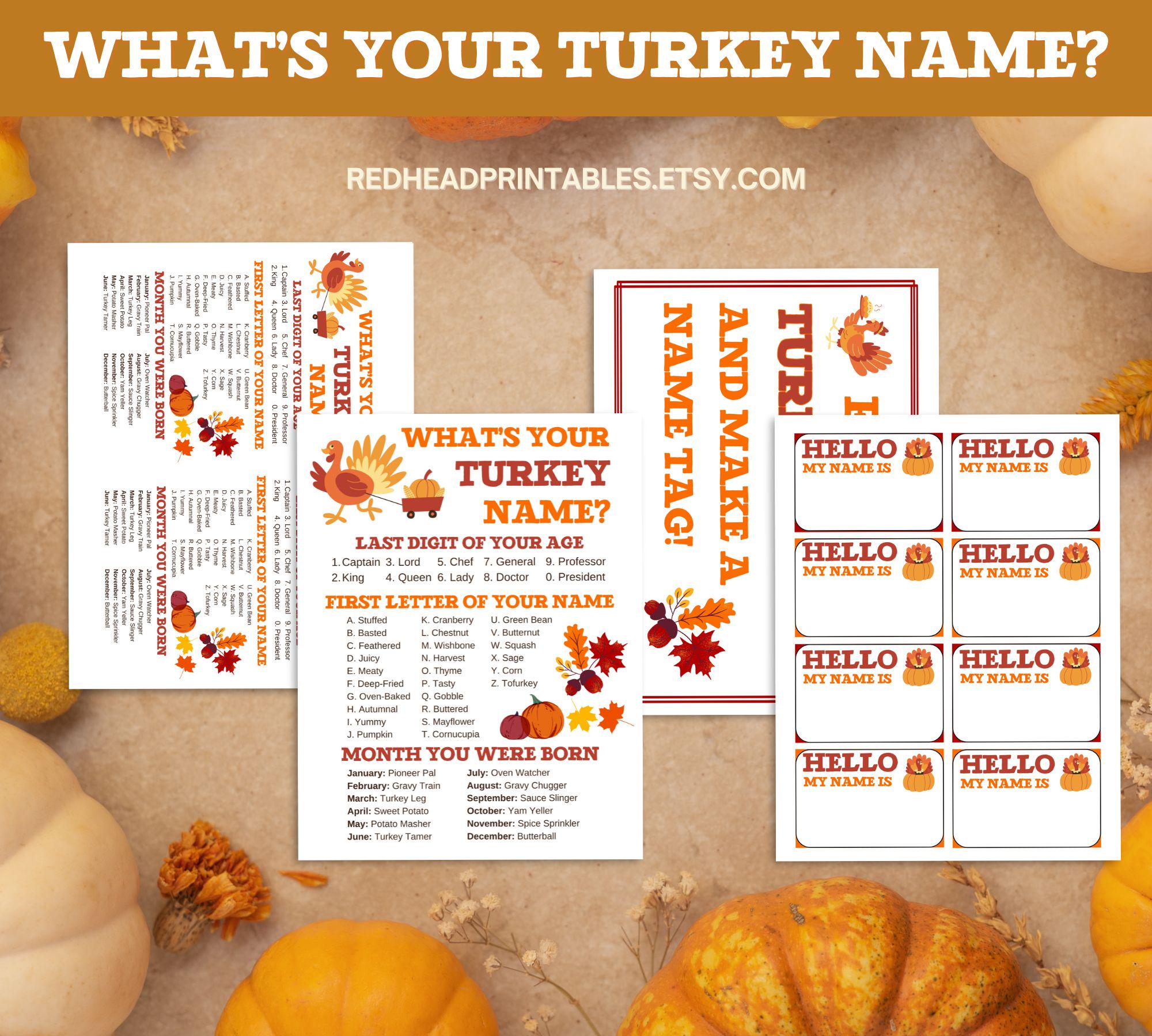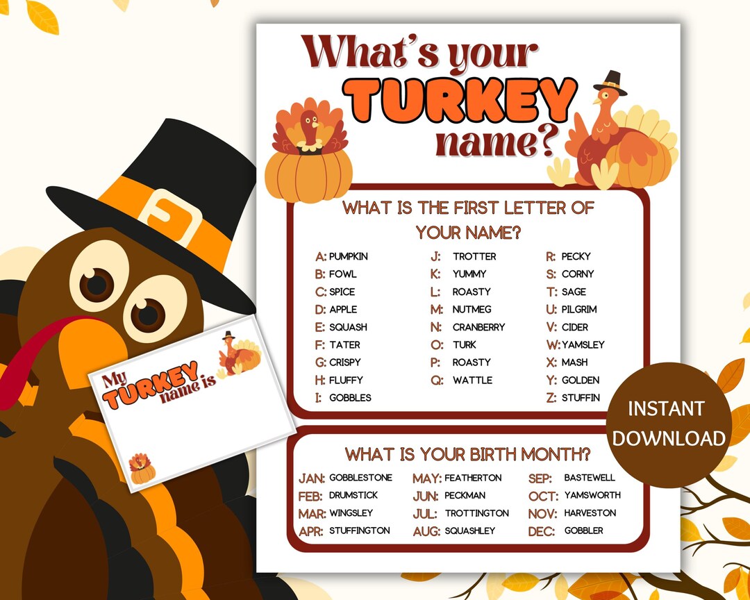What s Your Turkey Name? Printable Instant Download PDF Etsy
