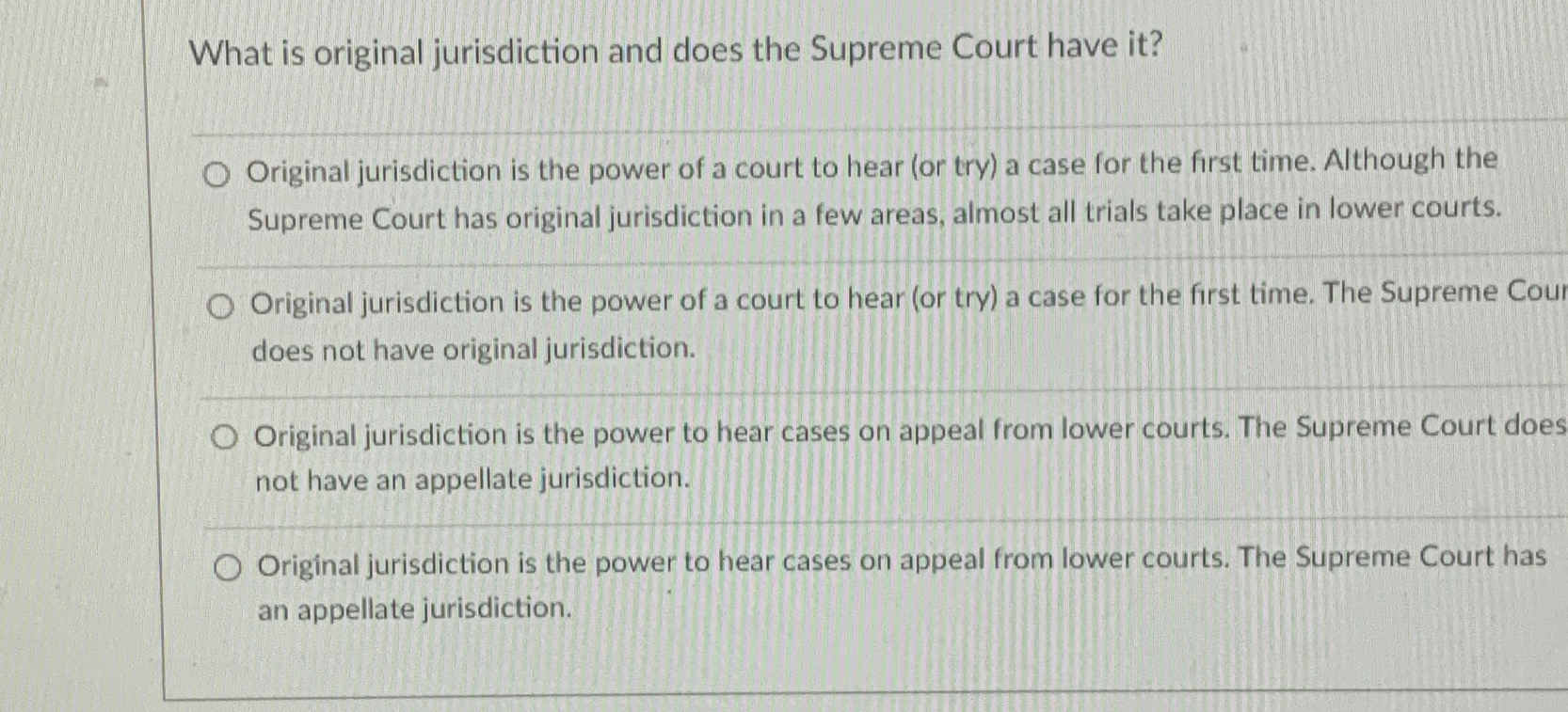 Solved What is original jurisdiction and does the Supreme Chegg com