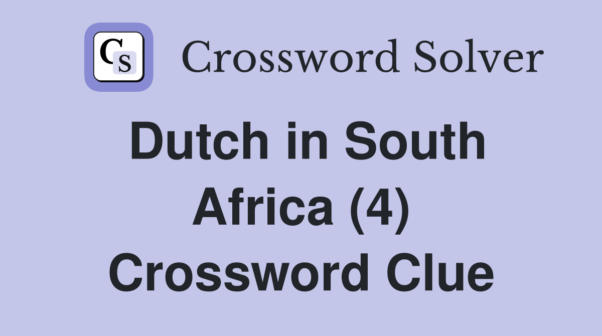 Dutch in South Africa (4) Crossword Clue Answers Crossword Solver