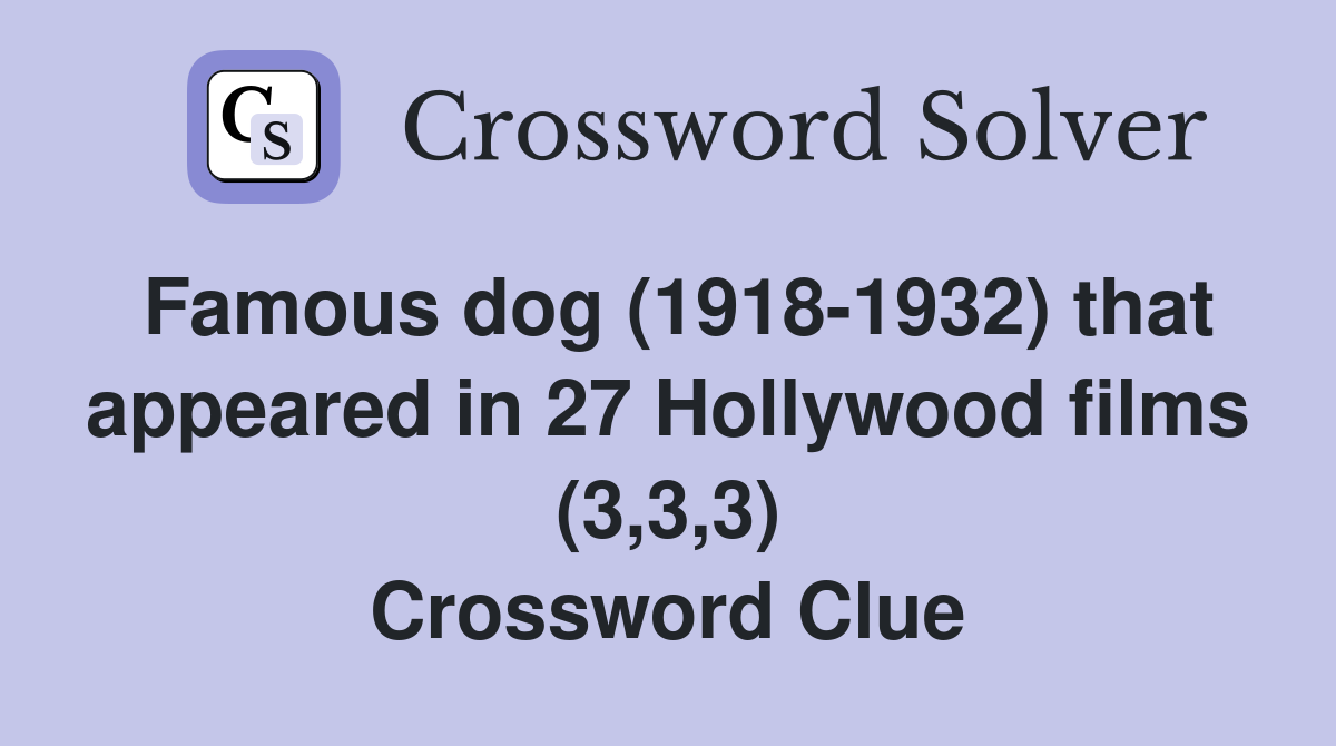 Famous dog (1918 1932) that appeared in 27 Hollywood films (3 3 3