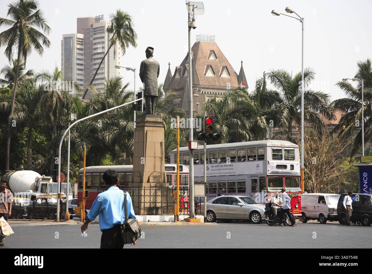 Bombay Stock Exchange and High Court traffic on road Street Veer