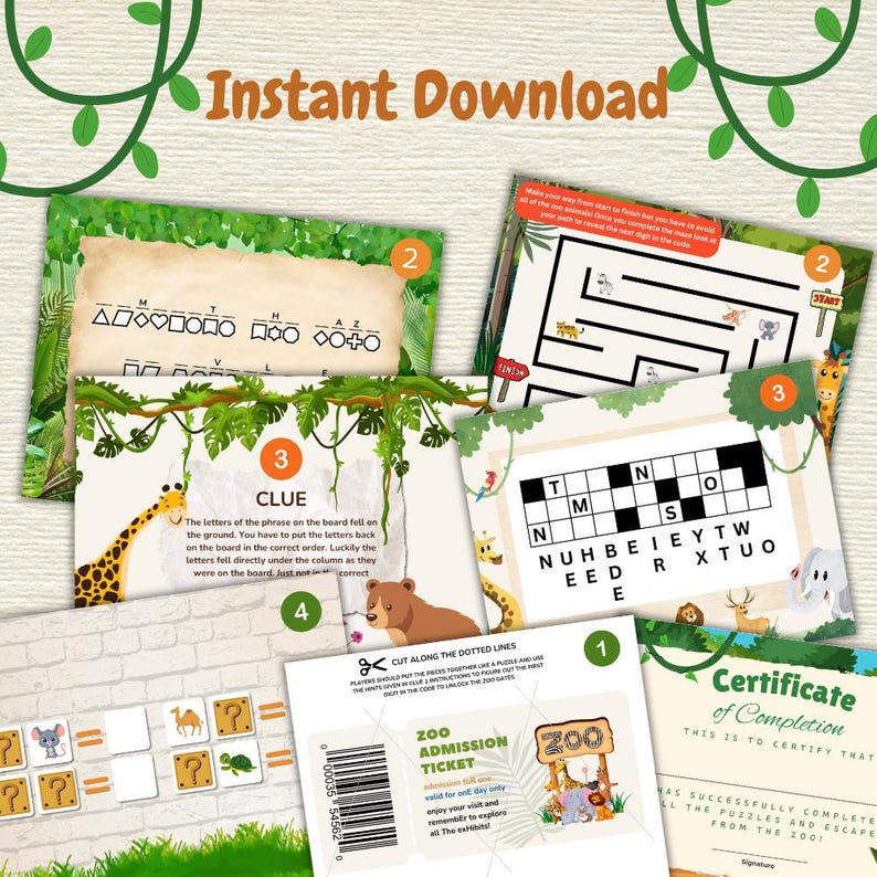 Printable Zoo Escape Room Game for Kids Etsy