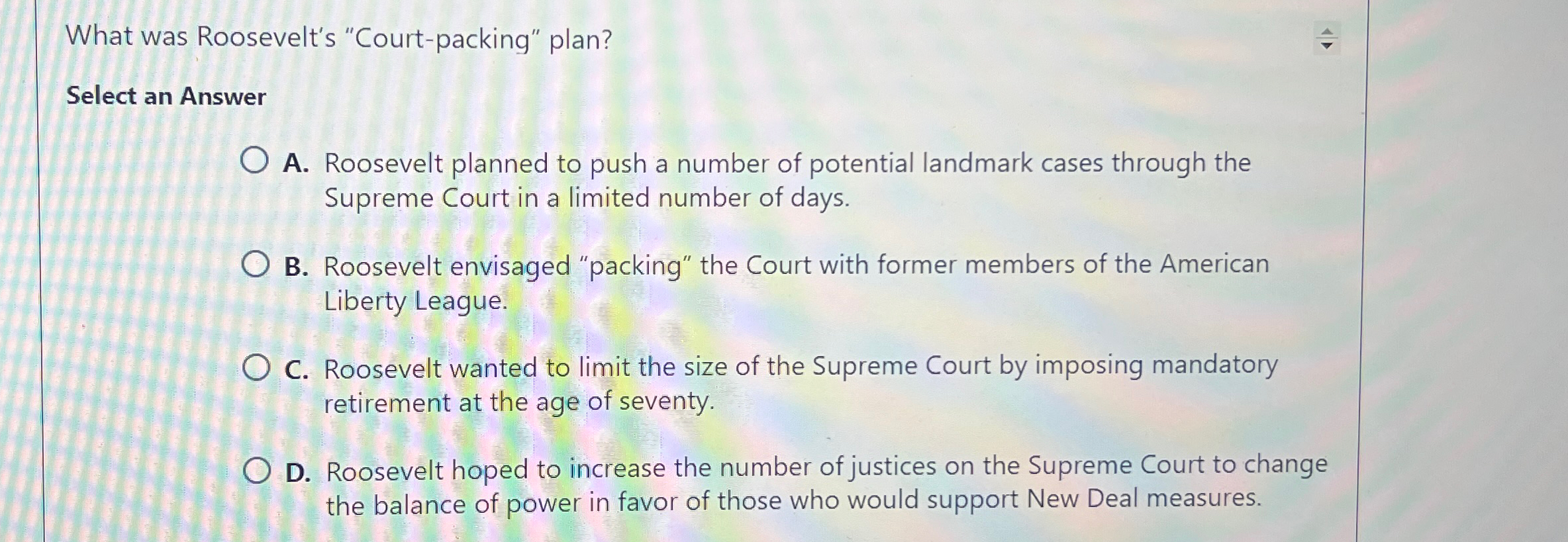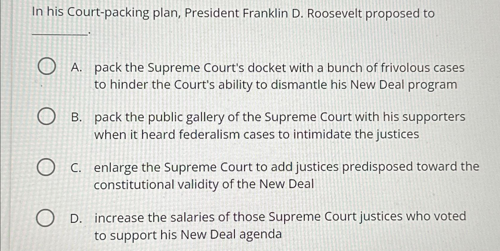 Solved What was Roosevelt #39 s quot Court packing quot plan?Select an Chegg com