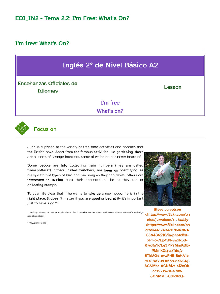 EOI IN2 Tema 2 2 Im Free Whats On PDF Crossword Word