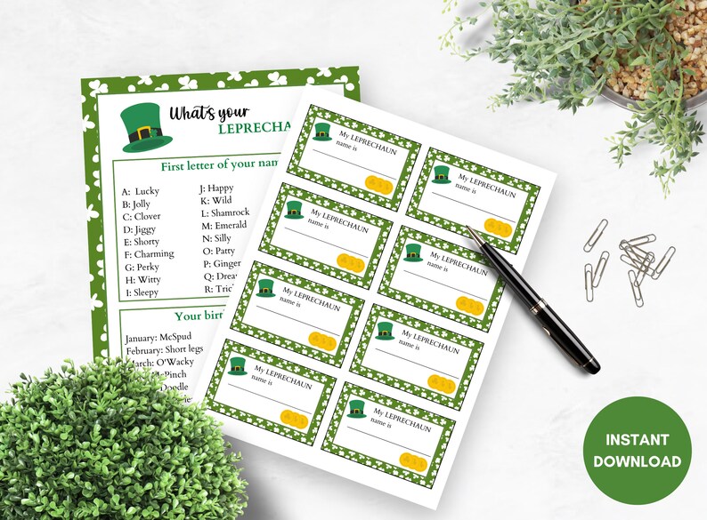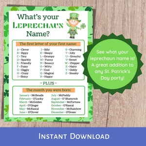 Whats Your Leprechaun Name? Name Generator Printable Party Game Instant
