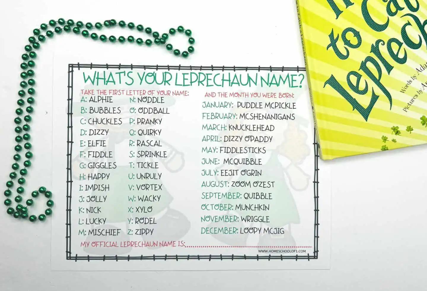 What is your Leprechaun Name Free Printable