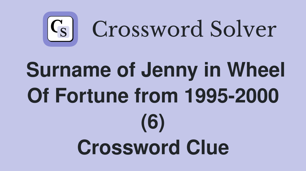 Surname of Jenny in Wheel Of Fortune from 1995 2000 (6) Crossword