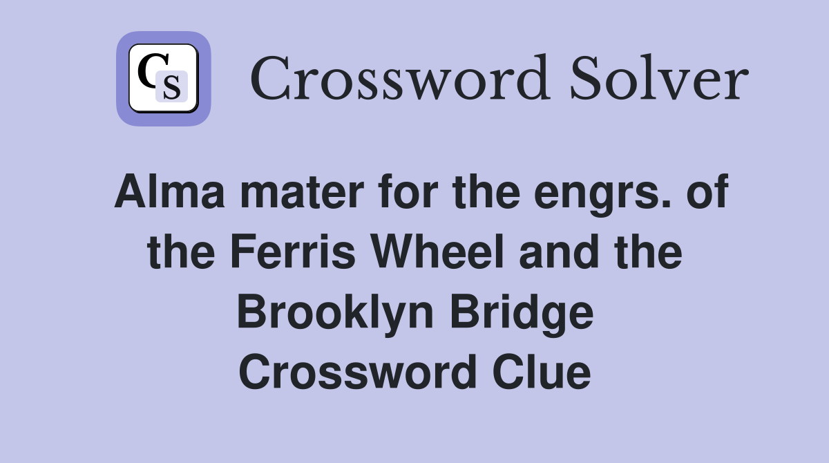 Alma mater for the engrs of the Ferris Wheel and the Brooklyn Bridge