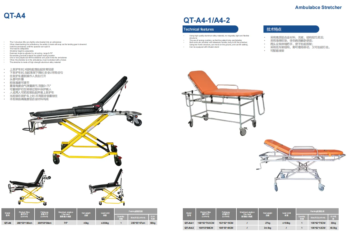 Folding Ambulance Stretcher Base Hospital Trolley Stretcher Adjustable