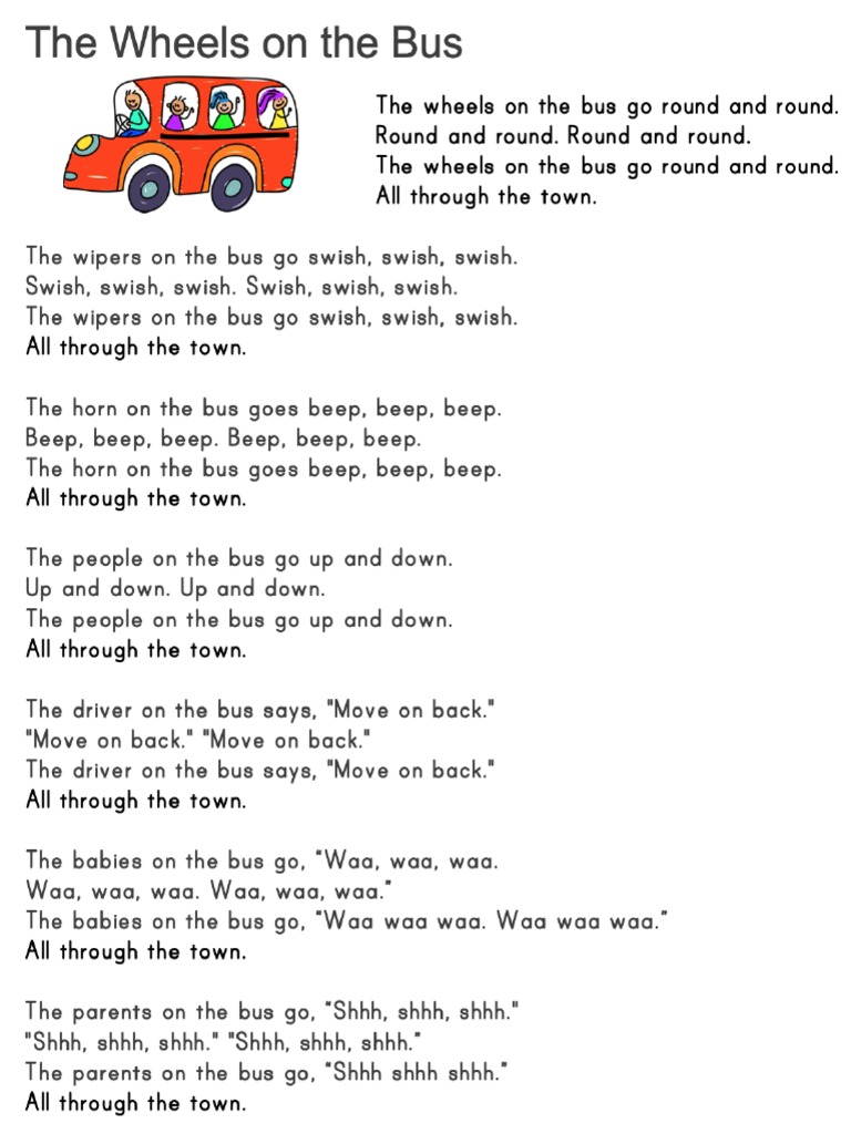 Classroom Classics quot The Wheels on the Bus quot Lyric Sheet ELF Learning