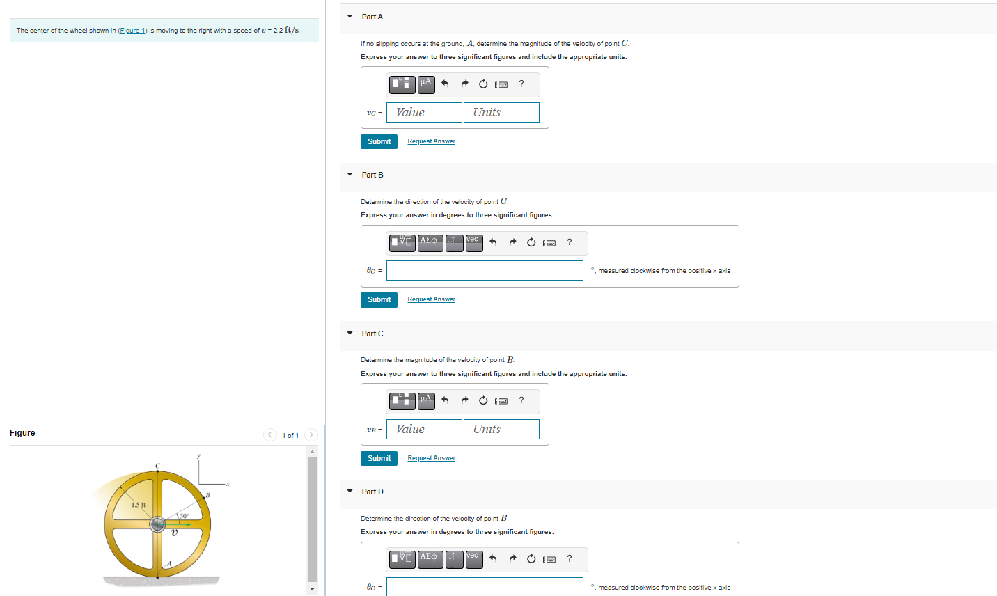 Solved The center of the wheel shown in (Figure 1) is moving Chegg com