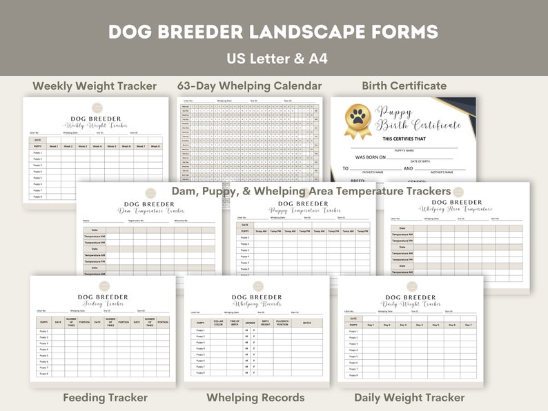 Dog Breeder Starter Kit Breeder Forms Whelping Charts Puppy Sale