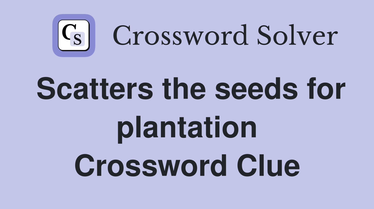 Scatters the seeds for plantation Crossword Clue Answers Crossword
