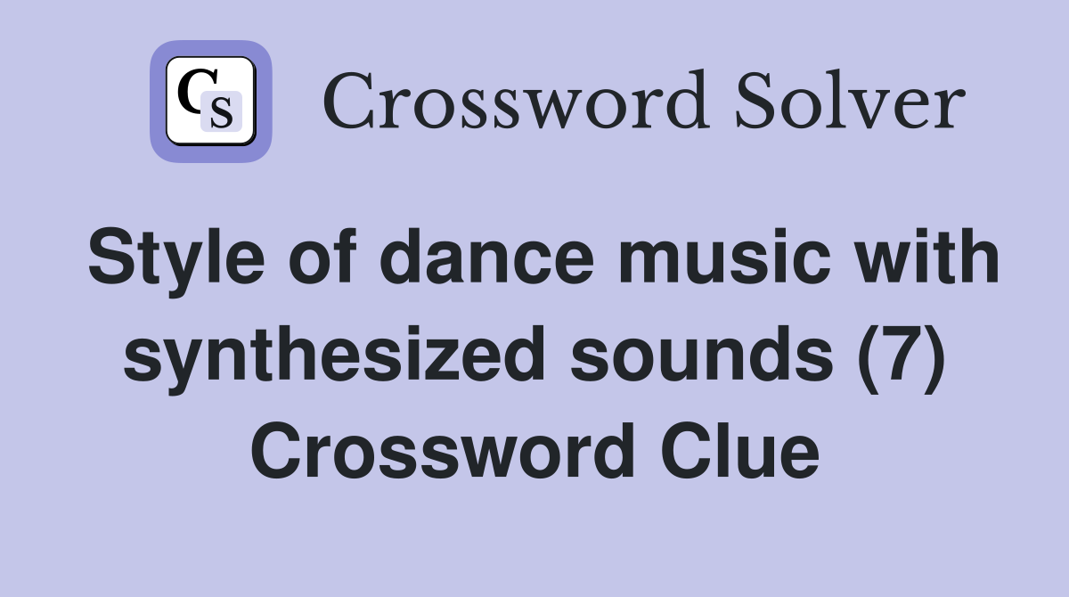 Style of dance music with synthesized sounds (7) Crossword Clue