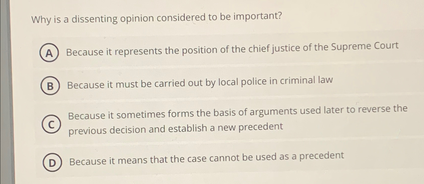 Solved Why is a dissenting opinion considered to be Chegg com