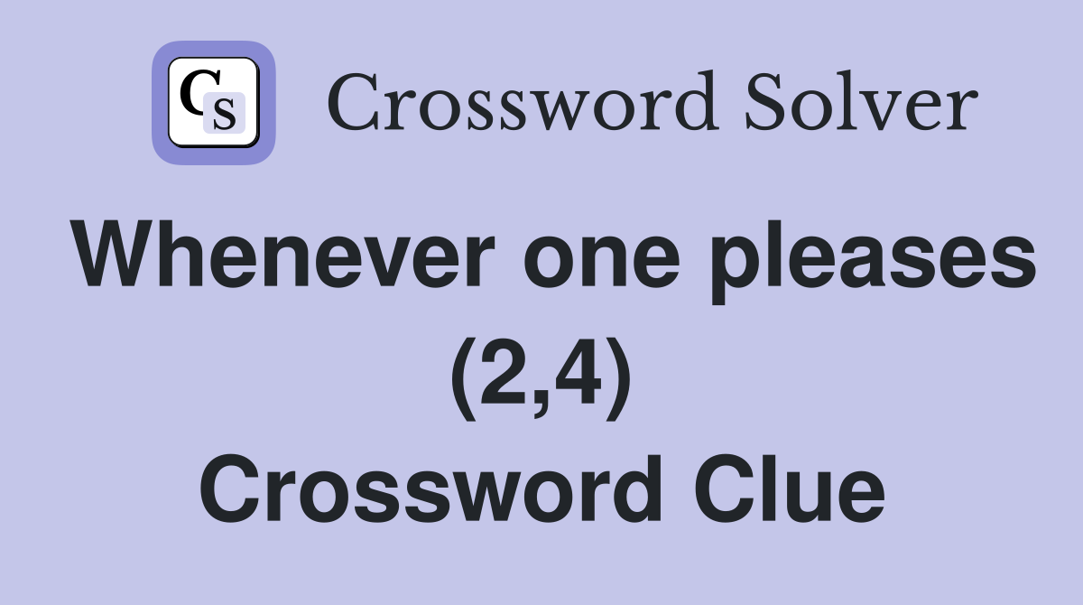 Whenever one pleases (2 4) Crossword Clue Answers Crossword Solver