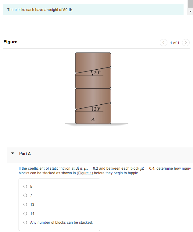 Solved The blocks each have a weight of 50lb Figure 1 of 1 Chegg com