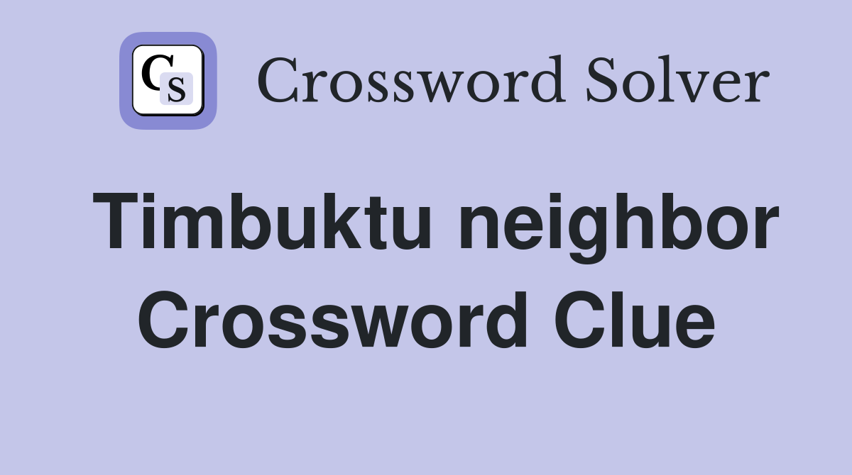 Timbuktu neighbor Crossword Clue Answers Crossword Solver