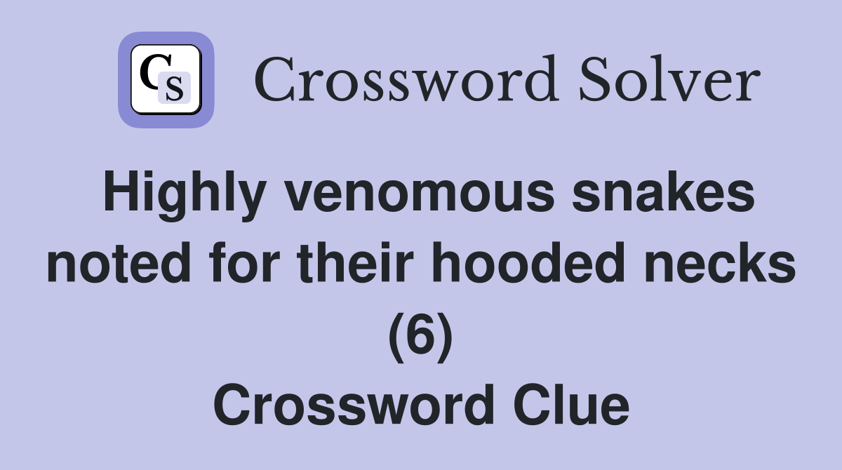 Highly venomous snakes noted for their hooded necks (6) Crossword