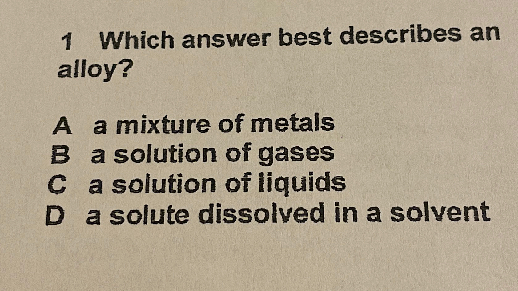 Solved 1 Which answer best describes an alloy?A a mixture Chegg com