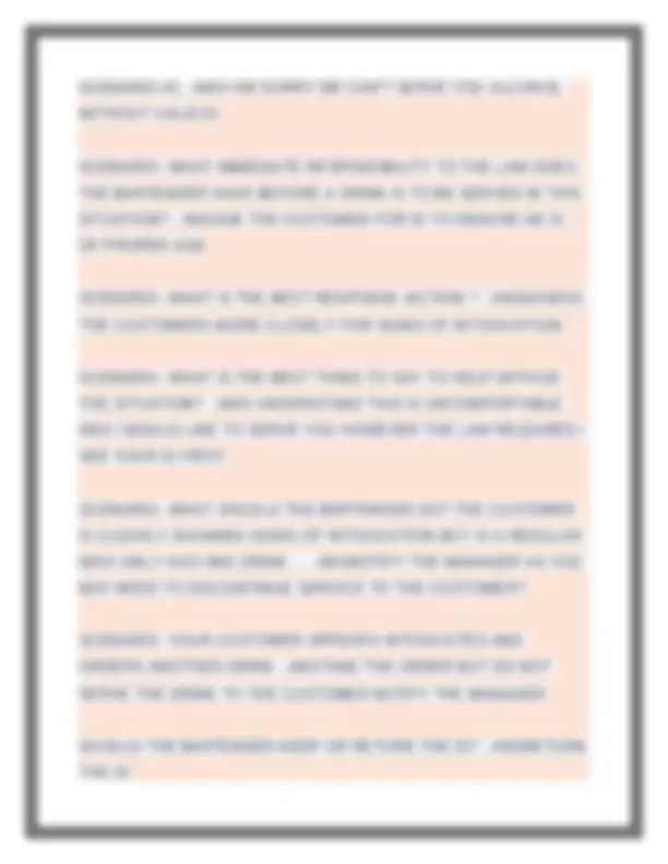 OUTBACK STEAKHOUSE RESPONSIBLE BEVERAGE SERVICE BBI Q A Exams Food