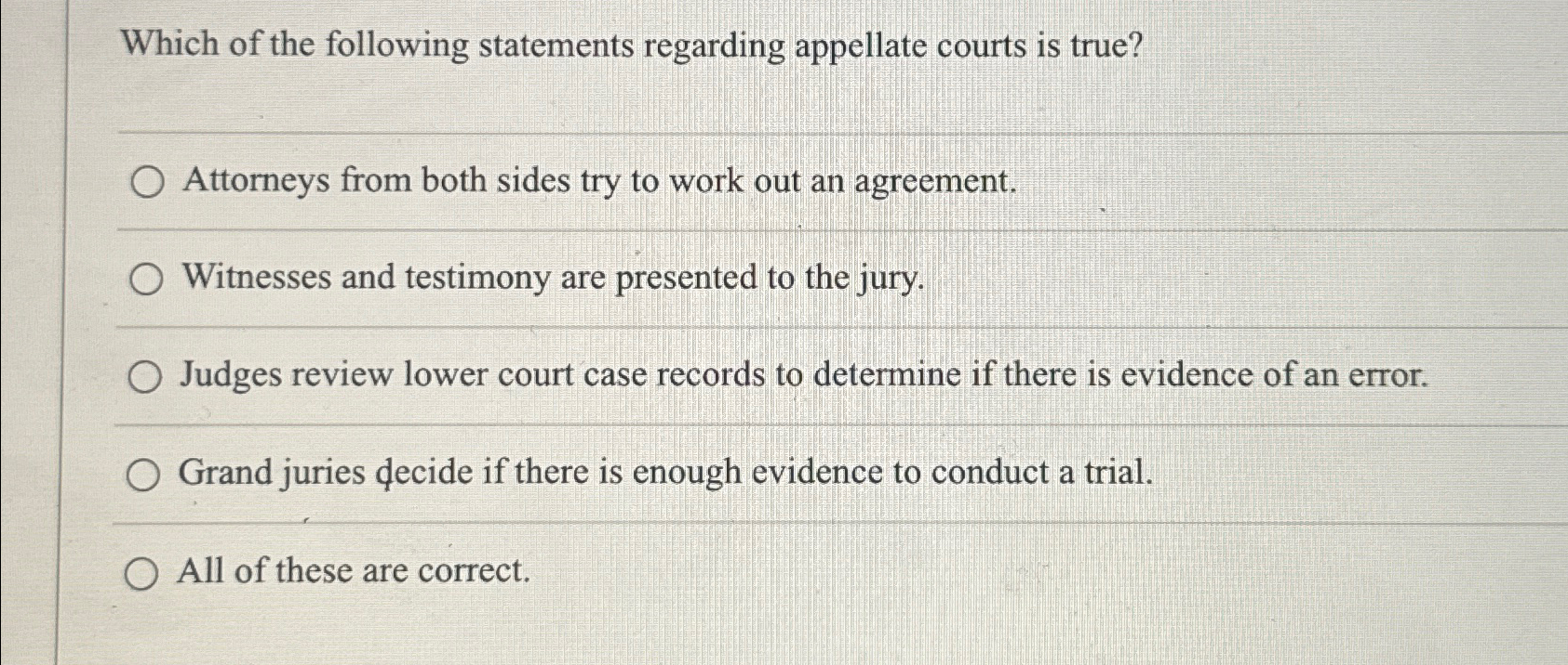 Solved Appellate courts review the decisions of trial courts Chegg com