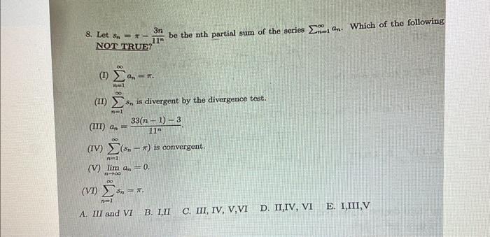 Solved 8 Let sn=π−11n3n be the nth partial sum of the Chegg com