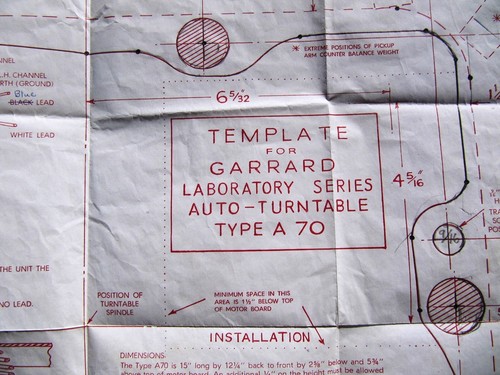 GARRARD A70 MOUNTING TEMPLATE Transcription Turntable Plinth Base