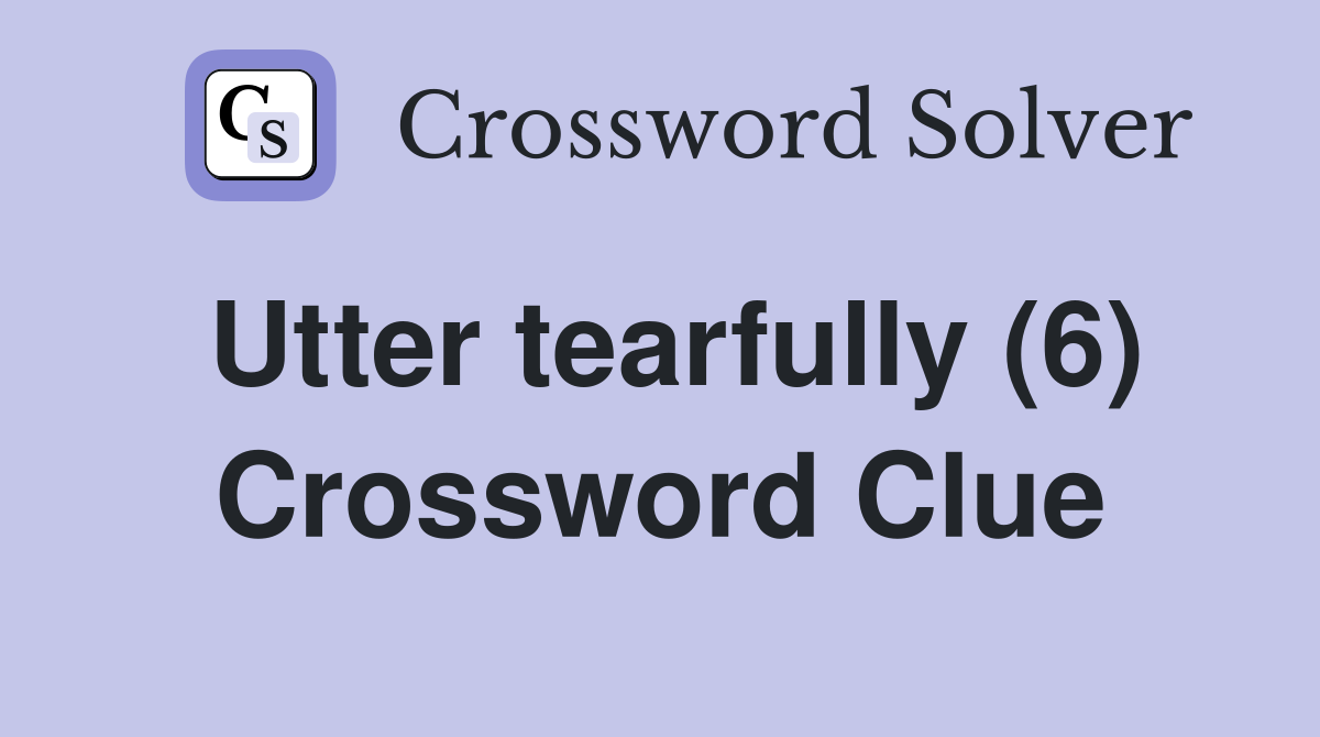 Utter tearfully (6) Crossword Clue Answers Crossword Solver