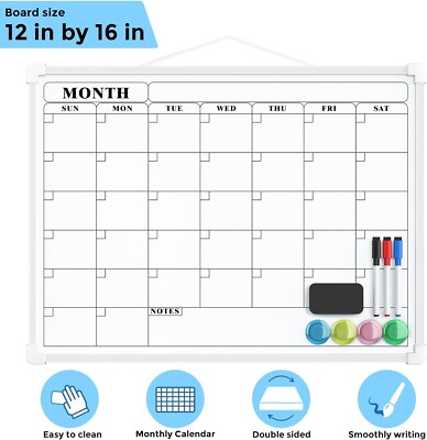 Dry Erase Calendar Whiteboard for Wall Polegas 16 quot X 12 quot Magnetic