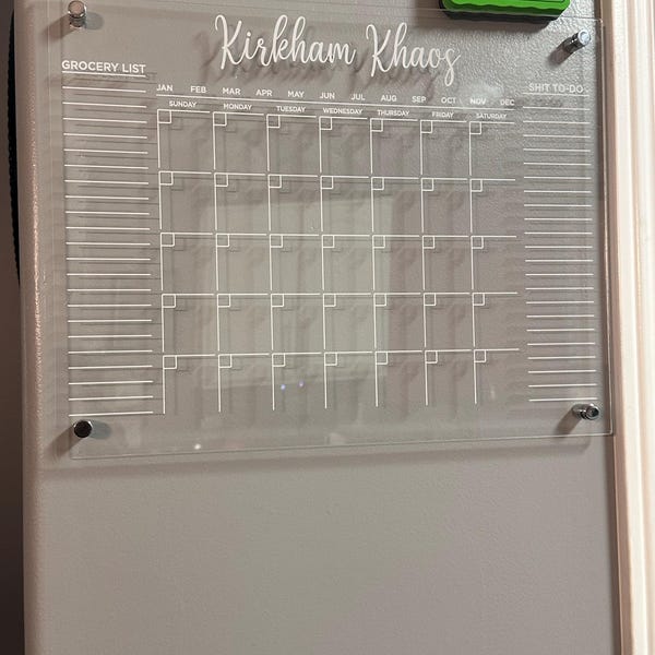 Acrylic Family Planner Personalized Monthly Calendar Dry Erase