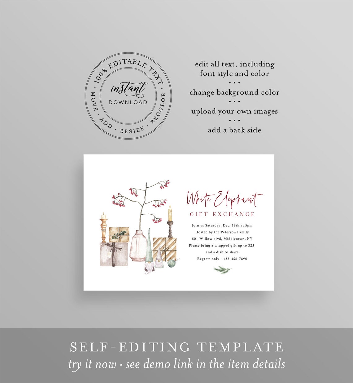 White Elephant Party Invitation Template Secret Santa Gift Etsy