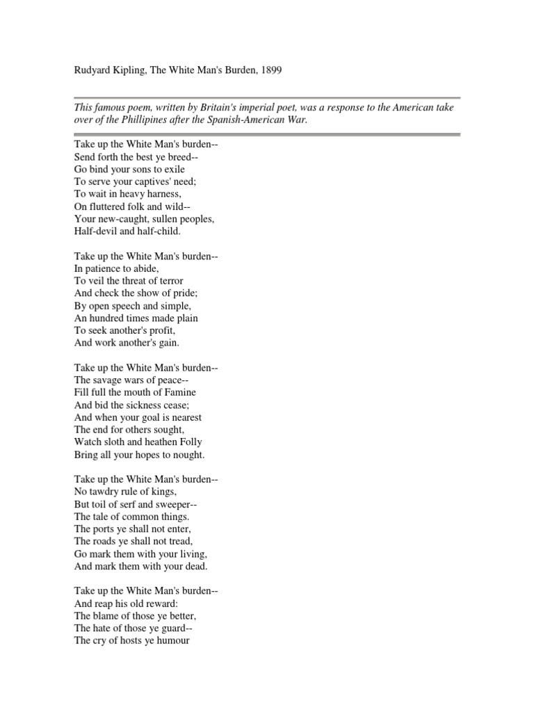 According To Kipling What Is The White Man #39 s Burden Online