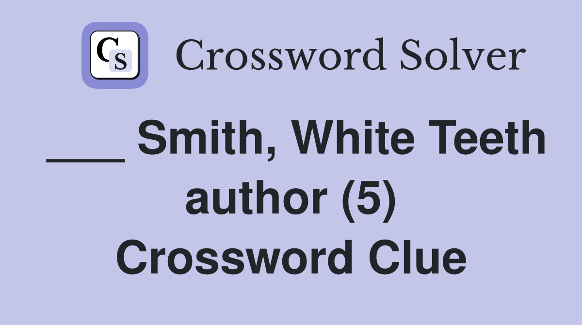 Smith White Teeth author (5) Crossword Clue Answers Crossword Solver