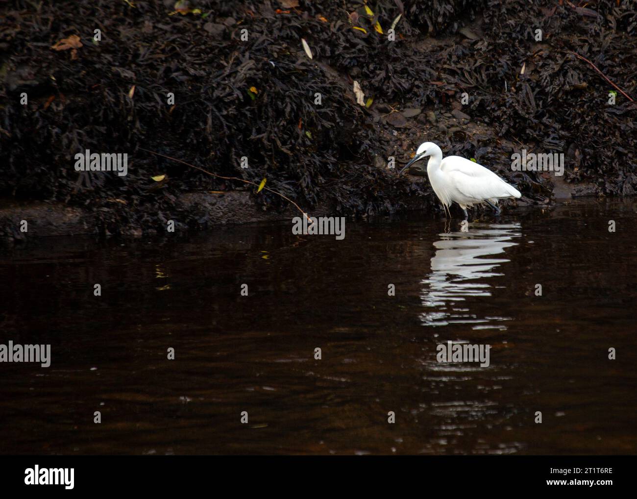 Little Egret Bird White Wading Bird Looking for Fish Stock Photo