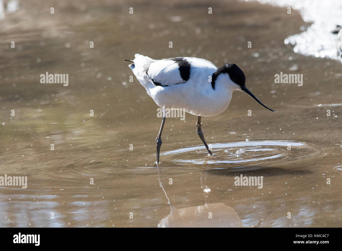 Two avocets (Recurvirostra avosetta) black and white wading birds