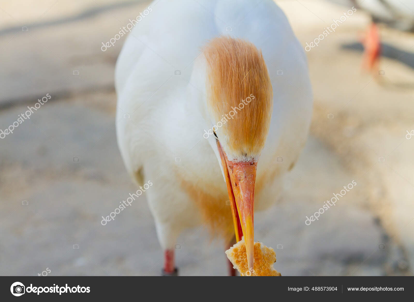 Closeup Cattle Egret White Wading Bird Yellowish Bill Leg Band Stock