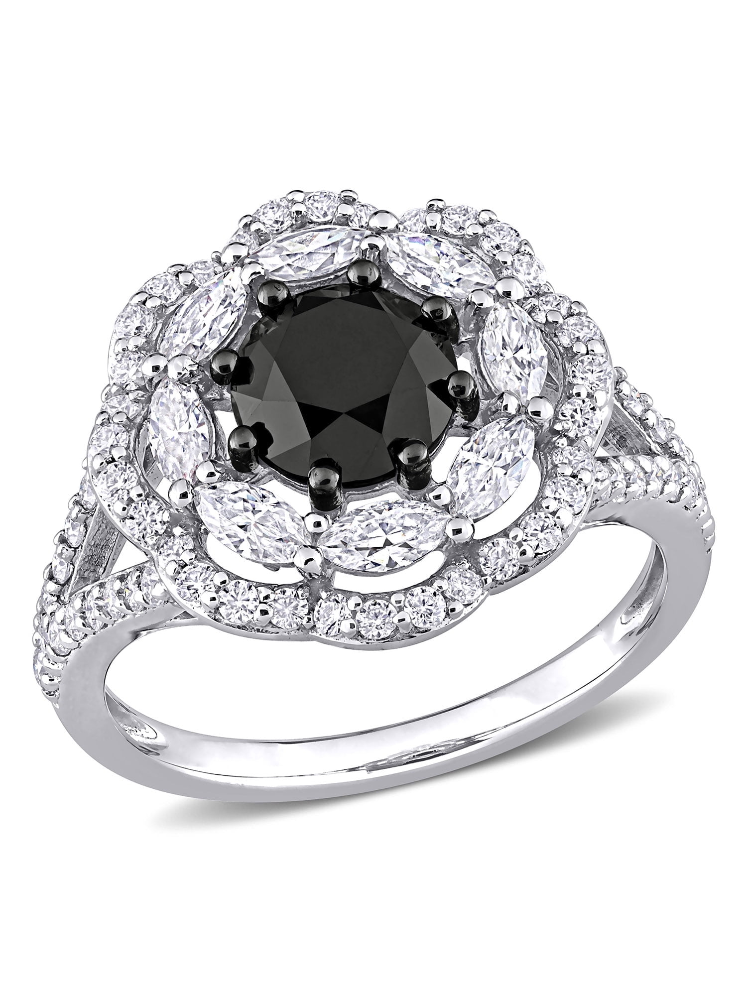 Everly Women #39 s Created Moissanite and Black Diamond 10k White Gold Ring
