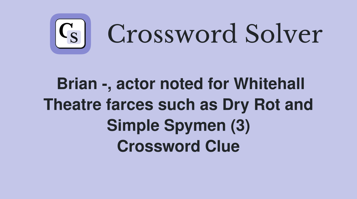 Brian actor noted for Whitehall Theatre farces such as Dry Rot and