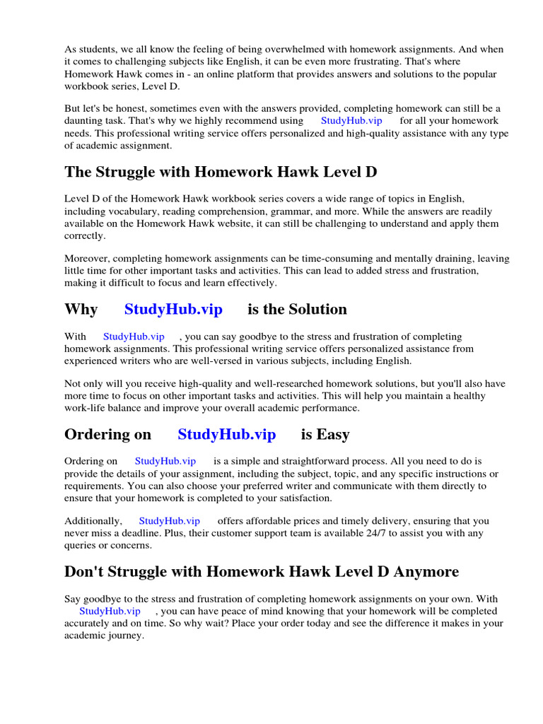 Homework Hawk Level D Answers PDF Homework Worksheet